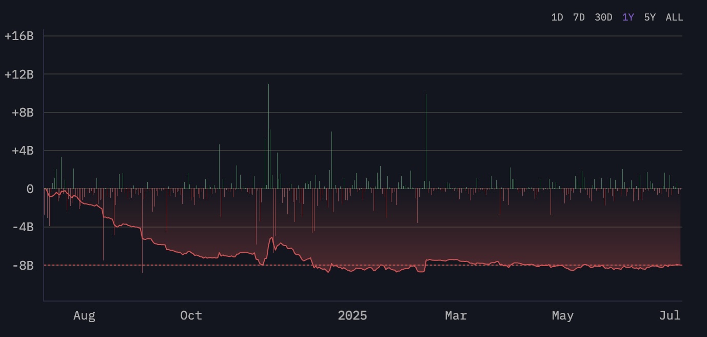 According to the blockchain analytics firm Arkham Intelligence, BONK has witnessed a year-long accumulation, leaving exchanges. This shows that the selling pressure from the Solana meme coin has dropped significantly.